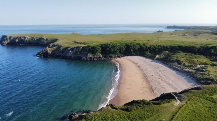 West Wales boasts dramatic cliffs, pristine beaches, secluded coves, and charming towns such as Cardigan and Aberaeron. Popular beaches like Barafundle Bay, Pendine Sands, and Whitesands Bay feature vast golden sands against the azure waters.